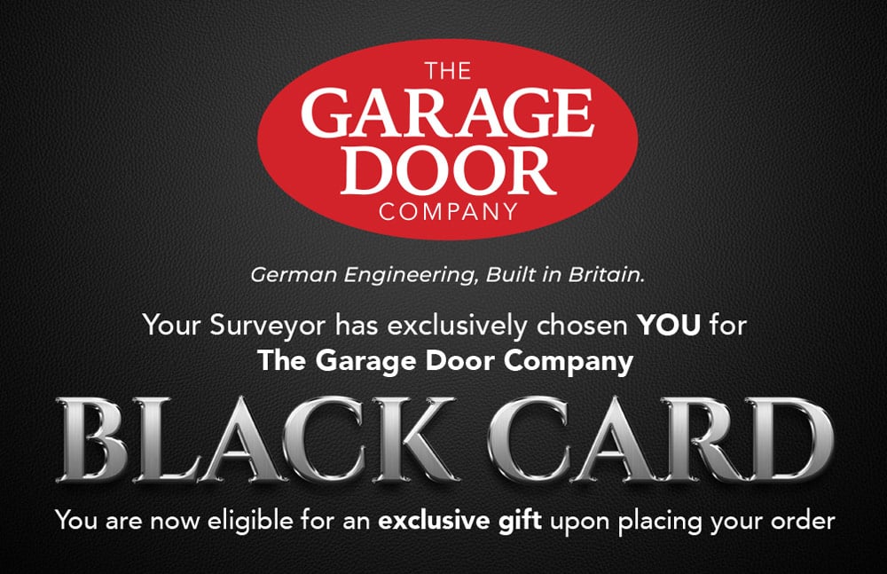 Your Surveyor has chosen you to be a holder of the elite Garage Door Company Black Card and become a member of our exclusive members club. When placing an order with our team for a new garage door, you will be guaranteed to win a prize from our prize pot which includes vouchers or gift cards from many sites such as Amazon, Marks & Spencer’s, Garden Gift, Homesense, B&Q & with many more available.